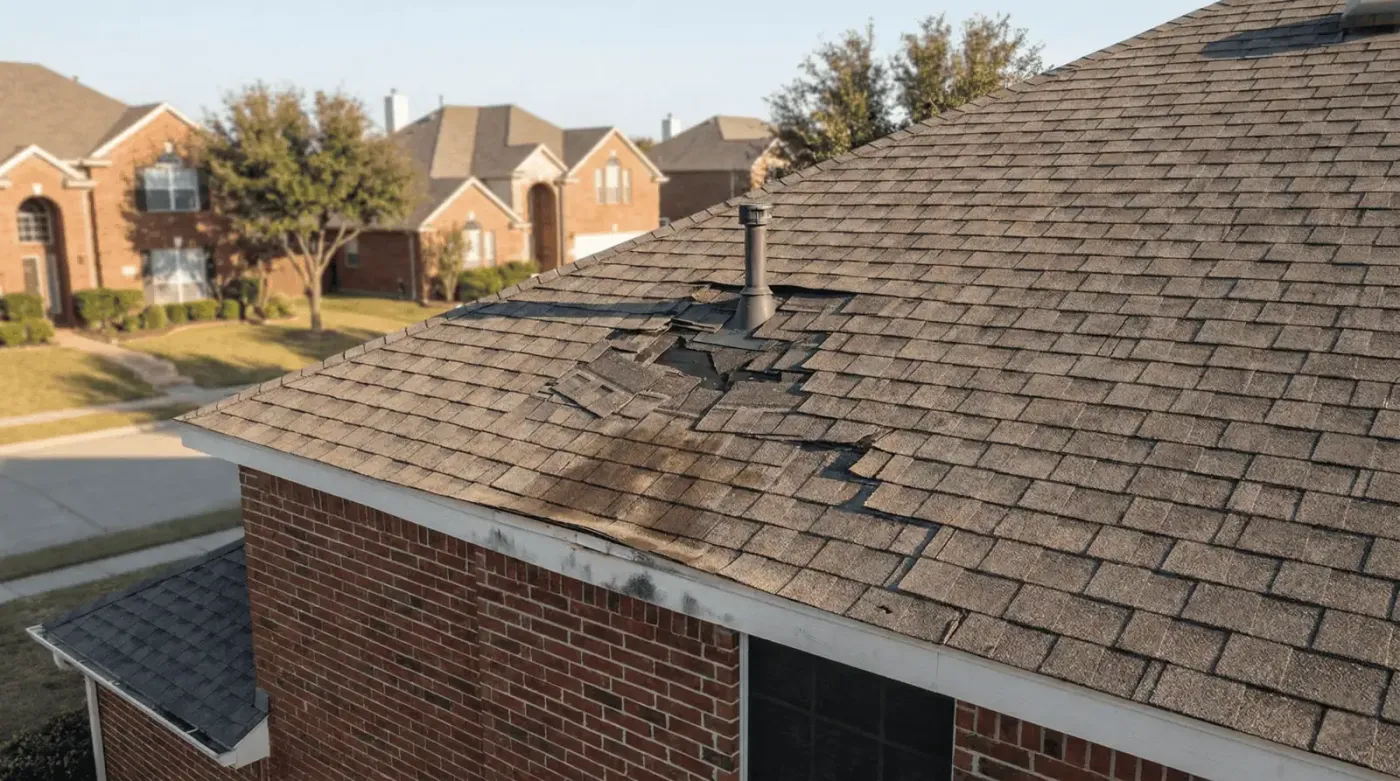 Roofing materials naturally wear down over time, especially in hot, sunny climates like North Texas. As shingles age, they lose flexibility and protective granules, making them more likely to crack, curl, or break loose.